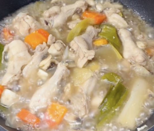 부드러워질 때까지 닭고기를 야채와 함께 삶아주세요. 닭고기를 잘게 찢어서 국물과 야채를 곁들여 드세요.