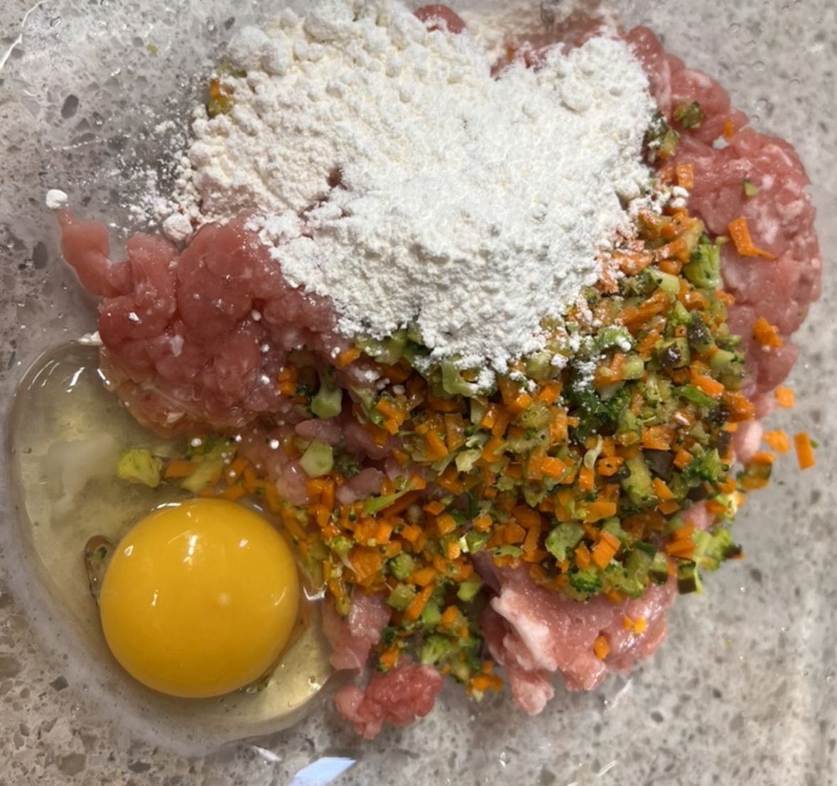모든 재료(계란, 빵가루, 양파, 마늘, 우유)를 섞은 후 재미있는 부분인 롤링을 할 차례입니다! 우리가 이 문제를 해결한 방법은 다음과 같습니다.