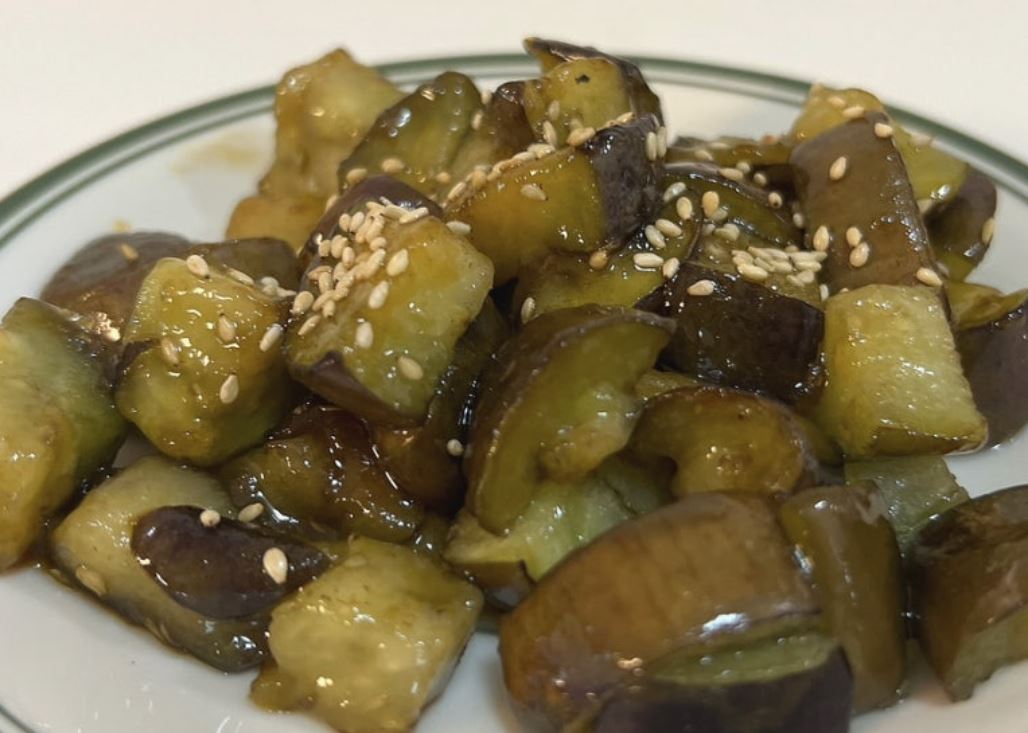 팬에 식물성 기름을 두르고 중불로 가열한 후 가지 조각을 넣습니다. 모든 면이 살짝 갈색이 될 때까지 약 3~4분간 조리합니다. 작은 그릇에 간장, 올리고당, 물을 넣고 섞는다. 가지 위에 소스를 붓고 끓이면서 소스가 가지 조각에 코팅될 때까지 졸입니다. 불을 끄고 살짝 식힌 후 서빙하세요. 이 요리는 부드러운 단맛과 풍미가 있어 아기에게 새로운 맛을 선사하는 데 적합합니다!