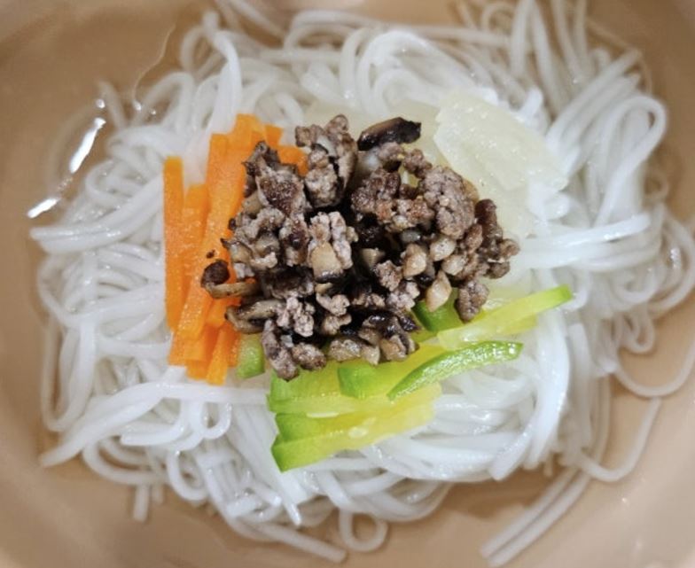 삶은 쇠고기를 먹기 좋은 크기로 찢거나 다져주세요. 국수는 유아의 씹는 능력 발달에 맞춰 충분히 부드러워지도록 따로 조리하세요.