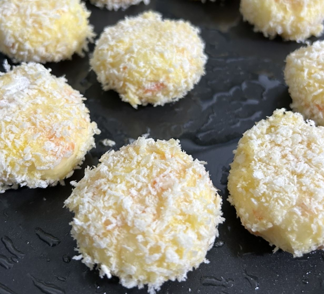 베이킹하려면 오븐을 190°C(375°F)로 예열하고 베이킹 트레이에 양피지를 깔아주세요. 고로케를 트레이에 놓고 서로 닿지 않도록 하세요. 약 15-20분 동안 굽고 중간에 뒤집어서 황금빛 갈색이 되고 바삭해질 때까지 굽습니다.
